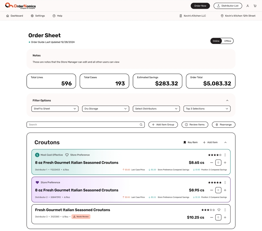 You know what you like but it’s hard to measure price, value, and quality all at once. OrderNomics handles the A2A price comparison, so you can make the best call for your kitchen.